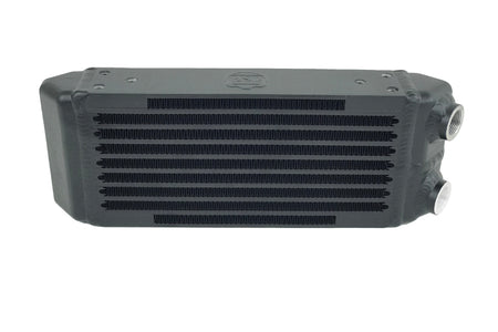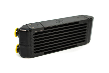 The unique design of CSF's oil cooler line has distinct advantages over conventional style oil coolers (plate-type/stacked oil coolers). The oil coolers can be placed in tighter spaces or different areas of the vehicle that don't have much vertical surface area. Longer rectangular sizes can also help with avoiding the stacking of too many coolers which may cause airflow issues to other components in the cooling system. Inlet/outlet port placement is much easier to route oil lines. Typical oil cooler lines have to be routed from different/opposite ends of the cooler often facing up or down. Usually one line has to run across from one side of the cooler to the other to then be routed together to the feed/return connection of the oil system. The CSF oil coolers are much more robust, durable, and can withstand a higher peak burst rate. This allows the cooler to be mounted in areas that might get high debris (front fascia, diff cooler, side vents, etc...). The CSF oil cooler is designed to withstand a tremendous amount of vibration and debris.