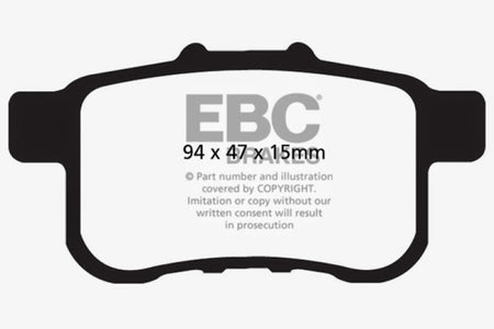 EBC Yellowstuff is an aramid fibre based brake compound with high brake effect form cold and is possibly one of the first ever compounds that can be used for STREET AND TRACK DRIVING. These pads do not require warm up but do get even stronger under the heat of hard driving. These are not a low dust pad and if your desire is for a low dust premium street use pad, you should consider EBC Redstuff.When considering full race use, Yellowstuff has been a strong favourite, having been used for two years in the Swedish Camaro Cup and at numerous other race events where a stock caliper system is fitted.It is also the choice of 90-percent of the Mazda MX5 Miata competitors in the UK race series and has an unblemished record as rotor friendly track pad for vehicles up to 2000 lbs weight or 200 BHP.In the USA the SCCA and NASA drivershave been testing Yellowstuff with feedback and good reports POURING in from a 543 test driver major market proving event with these groups. Read that figure again 543 test drivers.There is no guesswork here.