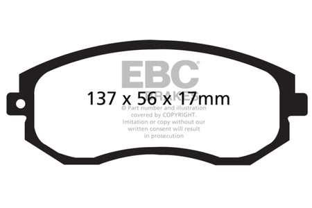 There are TWO reasons our customers love Redstuff, First because they are the lowest dust pad we have encountered by reducing dust by 60-90-percent. Plus the minimal dust you see is very easily removed with a simple sponge wash as it contains no steel fibre particles as in ALL OTHER pads. Second they brake like an alligator right from cold (as good as Original pads or better) and just get better as they heat up.This material is a Synthetic Fiber based brake compound enhanced with ceramic particles. If you have previously tried EBC redstuff (pre-ceramic compound) this material is light years ahead. It lasts longer; it brakes better and is quieter. Being a hard wearing pad, bed-in times can be as long as 1000 miles and drivers must be patient until the pad takes up the shape of their disc (brake rotor). This is a truly impressive fast road pad for repeated heavy braking.It emits far less dust than semi-metallic pads and has been proven to stop a passenger car/sedan/sport compact/hot hatch 13 metres quicker than OEM pads from 100mph/160kph. Features EBC Brake-In surface coating which conditions rotor surface and accelerates pad bed-in. Nominal friction coefficient 0.5 with approx. 50-percent dust reduction.Most EBC Red Ceramic pads are approved to ECE R90 brake safety regulation.