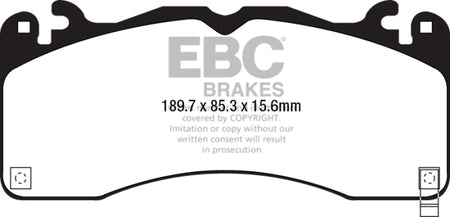 EBC Yellowstuff is an aramid fibre based brake compound with high brake effect form cold and is possibly one of the first ever compounds that can be used for STREET AND TRACK DRIVING. These pads do not require warm up but do get even stronger under the heat of hard driving. These are not a low dust pad and if your desire is for a low dust premium street use pad, you should consider EBC Redstuff.When considering full race use, Yellowstuff has been a strong favourite, having been used for two years in the Swedish Camaro Cup and at numerous other race events where a stock caliper system is fitted.It is also the choice of 90-percent of the Mazda MX5 Miata competitors in the UK race series and has an unblemished record as rotor friendly track pad for vehicles up to 2000 lbs weight or 200 BHP.In the USA the SCCA and NASA drivershave been testing Yellowstuff with feedback and good reports POURING in from a 543 test driver major market proving event with these groups. Read that figure again 543 test drivers.There is no guesswork here.