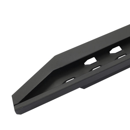 The RB20 Slim Line Running Boards offer the same heavy duty toughness as the original RB Series, but with a slimmer design that fits tighter along the cab for increased ground clearance when off-roading. Constructed from 16-gauge zinc-coated galvanized steel, the Raptor-inspired boards were built to protect your panels from flying debris while providing a full-length step platform. The modern, bullet-stamped design is 5 1/2 inches across at its widest point (compared with 7 1/2 inches of the original RB20) and are offered in cab-length sizes that fit most popular trucks, Jeeps and SUVs. RB20 Slim Running Boards come with a Limited Lifetime warranty on materials and construction and a 5 year warranty on the Textured Black Finish.