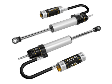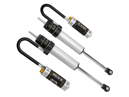 ICON’s 2.5 Aluminum Series shocks shocks are designed and built to give your vehicle outstanding performance off-road and a smooth ride on the street. These shocks are configured specifically for each application in both length and damping tune. Featuring one-piece impact extruded aluminum cylinders, these 2.5 Aluminum Series shocks offer lighter weight, improved corrosion resistance, and a more uniform finish than traditional plated steel cylinders. Like all ICON'S Shock Absorbers, 2.5 Aluminum Series shocks are 100% rebuildable and 100% revalveable. For piggyback and specific remote reservoir applications, ICON'S unique use of a 6061 billet aluminum manifold a few inches below the top cap of the shock creates an internal Bump Zone that when used creates an additional 20% of damping force. This additional force helps prevent harsh bottom outs and controls the suspension when compressing at high velocity. The ICON CDC Valve is an externally adjustable valve that restri cts oil flow into the reservoir which creates 10 levels of compression damping force ranges. If you are looking for a more user defined tune, consider looking into the Omega Series bypass shocks.