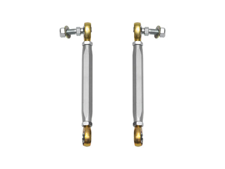 These billet aluminum sway bar links for your 2020-Up Jeep Gladiator JT prevent sway bar bind as the suspension approaches full droop when used with ICON rear shocks and springs while on vehicle adjustment allows for further fine tuning of the sway bar angle. High quality FK rod end bearings also eliminate bushing deflection common with stock bushings for confidence inspiring handling characteristics and allow for maximum articulation without binding.