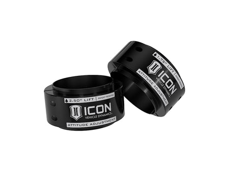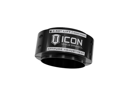 The ICON Attitude Adjustment Collar (AAC) is an industry first, patent pending multi-height coil spring collar that works in conjunction with a top load shim that can be configured in five unique ways to yield .5” to 2.5” of front lift height over stock. Taking the front-end dimensions of the "Gen 3" F-150 Raptor into account, the collar and shim design of this leveling system achieves this range of lift height while keeping the OE shock in the ride zone, maintaining factory ride quality. Other options on the market achieve lift height solely through coil preload, which places the shock in the rebound zone at ride height and drastically impacts ride quality and performance. Installation of this leveling system requires no disassembly of the shock, making it a simple and straightforward process as opposed to other options currently available. CNC machined 6061 billet aluminum construction and a black anodized finish mean this product can stand up to the test of time in the harshest on and off-road conditions. Backed by ICON’s limited lifetime warranty, the ICON Vehicle Dynamics Attitude Adjustment Collar is the best leveling solution on the market for the 2021-2025 Ford F-150 Raptor.