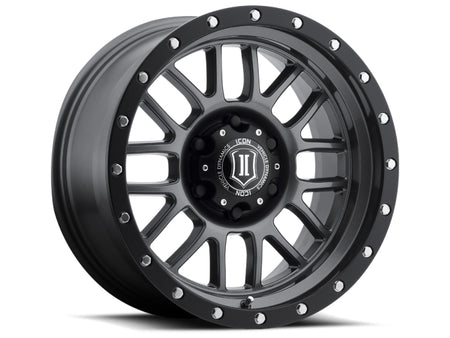 ICON Alpha 17x8.5 6x5.5 0mm Offset 4.75in BS 106.1mm Bore Gun Metal Wheel