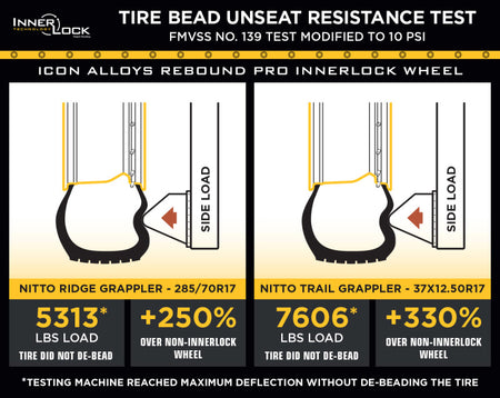Staying true to the ICON Alloys approach, the Recon PRO has been engineered to maximize caliper clearance and optimize wheel position for un-hindered suspension travel and steering function. Backspace and wheel offset dimensions have been strategically developed to reduce scrub radius, improving all-around handling and ride quality. The Recon PRO has also been strength tested to yield a 3,200lb load rating - making it one of the strongest wheel options on the market. With build features such as these, it's clear that a set of ICON Alloys wheels is the perfect complement to any truck, Jeep, or SUV.