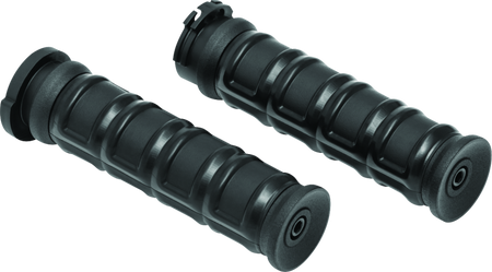 Kuryakyn® Dillinger Grips combine a narrow profile with ribbed EPDM rubber for aggressive grip, commanding control and a soft, vibrationdampening foundation to combat hand and forearm fatigue.