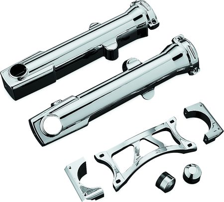 Kuryakyn Fork Skins chrome out 39mm front ends and provide improved handling associated with a fork brace. Extremely quick and easy to install. Only a few wrenches and 20 minutes is needed to transform the ordinary to the spectacular.