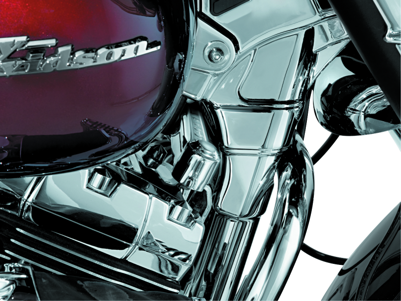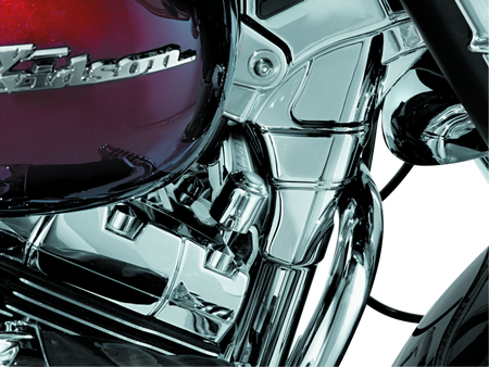 The relocated front engine stabilizer on Touring models may have improved vibration control and simplicity, but not the appearance. Change that with this link cover.