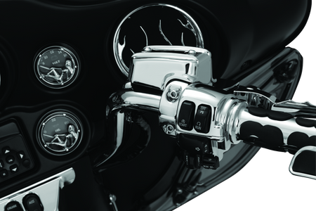 Master cylinder cover dresses up the reservoir and covers the entire visible bracket assembly with a layer of glistening chrome