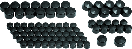 Includes (10) Kool Kaps for 5/16 in. socket head cap bolts, (36) Kool Kaps for 1/4 in. Socket head cap bolts, (6) Kool Kaps for 5/16 in. Hex head cap bolts, (10) Kool Kaps for 1/4 in. Hex head cap bolts