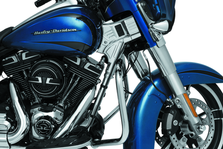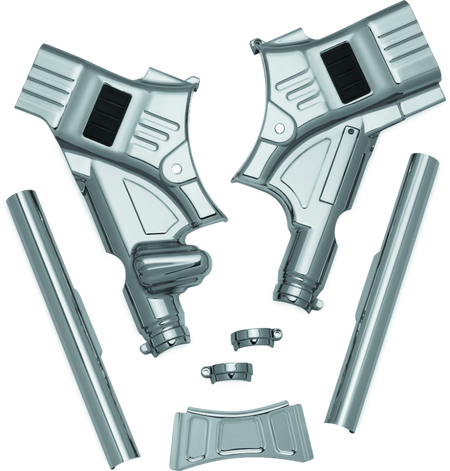 Just the right touch of edge and functionality. Hide those welds and wires in one quick and easy step. Kuryakyn Neck Cover Kits customize the frame's steering neck and down tubes with easily installed chrome covers.