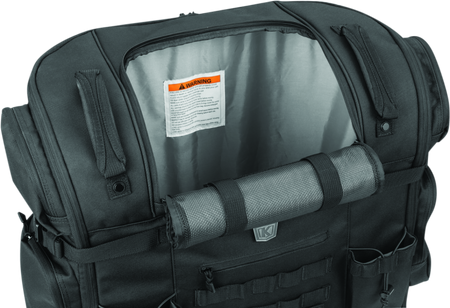 All-new light gray interior reduces heat and improves visibility into the bag in low light; Includes collapsible travel bowl for food/water and integrated external rider-facing bottle pockets