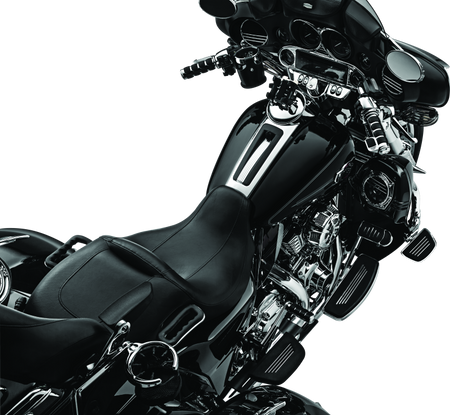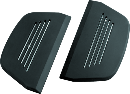 Add style without compromising the vibration damping comfort of your stock floorboard pads. Inserts for the driver floorboards ride on rubber isolators to keep your feet buzz-free. The passenger inserts pop right in place of the stock pad.