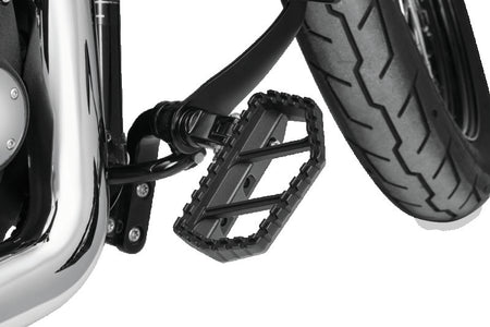 Ideal for hardcore riders seeking an aggressive look combined with the comfort of enhanced foot room. Accepts splined adapters to allow forward, back or center positioning at almost any angle.