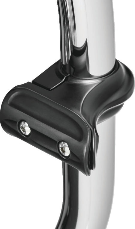 These minimalist toe rest mounts attach directly to the engine guard to allow positioning of the operator's heel on the floorboard with the front of the foot resting just behind the engine guard for a comfortable cruising option.