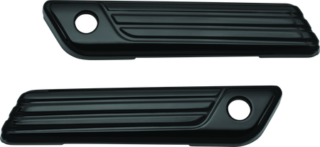 Tri-Line Saddlebag Hinge Covers are made from high-quality die-cast aluminum and are direct replacements for the stock hinge covers. Styled to match the complete line of Kuryakyn Tri-Line accessories for Harley-Davidson Touring models, Tri-Line Saddlebag Hinge Covers reuses stock hardware for installation and accepts factory lock assemblies.