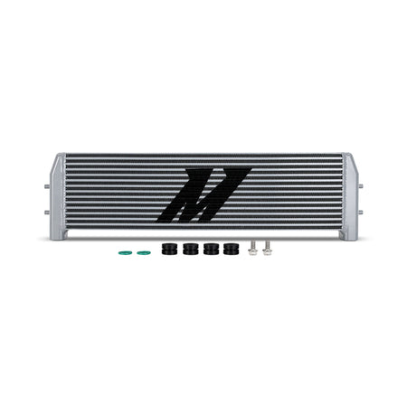 The BMW M5 power and handling statistics are completely mind-blowing for a car tipping the scales at well over two tons. The S63 twin-turbo V8 is underrated from the factory and responds well to tuning and bolt on modifications. Calling it the ultimate super sedan would not do this car justice, it’s just that good. But every amazing automobile must have an Achilles’ heel, right? Some investigation into this model told us that enthusiasts were seeing elevated oil temperatures during track driving conditions. Our team set out to create a replacement, high-performance oil cooler that could handle the rigors of extreme driving conditions and the abuse of daily commuting. The Mishimoto S63 M5/M6 oil cooler features extremely precise CNC-machined billet-aluminum end tanks which are professionally TIG-welded to our robust bar-and-plate core. Our strategically designed 55mm-thick core provides a massive 24% increase in core volume, and a 40% increase in external fin surface area. This added surface area promotes greater heat transfer, which directly impacts internal fluid temperatures. Our performance oil cooler is a complete bolt-on solution that includes everything needed for an easy installation such as hardware and replacement O-rings for the oil lines. Our heat exchanger is finished in a durable silver powder coat, providing both corrosion resistance and improved aesthetics. Whether your M5 sees frequent track time or just the occasional back-road jaunt, upgrading the oil cooler is a great way to extend the life of your S63 and ensure maximum engine output when you need it most. As with all our BMW products, this oil cooler includes our signature Mishimoto Lifetime Warranty.
