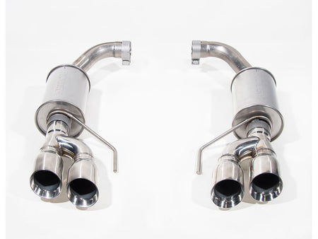 Give your 2018+ 5.0L Mustang GT an aggressive race-inspired sound and powerful looks, and boost performance with this ROUSH Performance Axle-Back Exhaust System. This 2018+ ROUSH Performance Axle-Back Exhaust System is constructed of corrosion-resistant T-304 stainless steel, and is mandrel-bent for high-performing airflow. Thanks to hours of research and development, testing, and validation, this system improves flow and reduces back pressure. Along with quad polished T-304 stainless steel tips, this system includes dual high-flow mufflers that improve the stock sound, performance, and flow characteristics of the Mustang's V8 powerhouse.