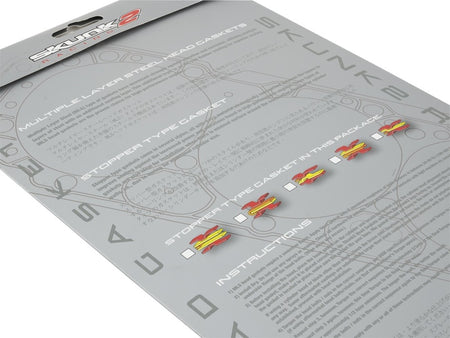 Multiple Layer Steel (MLS) type of gaskets have increased strength against vibration and corrosion, and have of multi-layers of steel with an additional sealing layer. This additional layer is an HR-180 Rubber coating for superior sealing. MLS head gaskets are the proven choice for high-performance engines. Stopper type gaskets come in several styles, all with extra material strategically sandwiched between the layers to improve sealing against the increased power and vibrations found in high-performance engines. These types of gaskets are also ideal for installation when there is minimal surface around the combustion chamber or cylinder walls, i.e. due to boring for additional cylinder size.