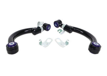 Heavy-duty camber-adjustable rear upper control arm set to fine-tune suspension camber for better tire contact and improved handling