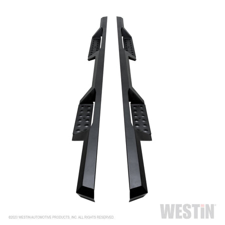 Westins HDX Drop Nerf Step Bars provide the rugged look and function that truck owners need and want. They feature a solid 1-piece steel construction and heavy duty punch plates creating high traction step areas. The HDX Drop Nerf Step Bars also feature Westins notched bar design which provides more than 2in. of additional toe/heel placement versus competitive brands. Available in a textured black finish that complements Westin HDX Bumpers. The HDX Drop Steps have vehicle specific applications and include a vehicle specific mount kit, installation hardware and instructions.