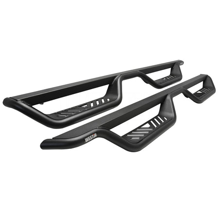 If you want a unique upgrade that makes accessing your truck, Jeep or SUV easier, Westin's Outlaw Drop Nerf Step Bars are the finishing touch you need. Crafted from mandrel bent 1.5' diameter steel tube and paired with a welded cab length top plate, these step bars are more than just an eye-catching accessory. The distinctive 4' drop step features a die-stamped step plate that makes it easy to knock the mud, dirt, and debris from your feet before you step into the cabin. Worried about compatibility' We've got you covered. From GM, Ram, and Toyota to Ford Trucks and even the newer 2 and 4 door Broncos, the Outlaw Drop Nerf Step Bars are designed to be a seamless fit. You can learn all about the benefits of adding nerf bars to your rig here. Durability' Check. Aided by an electrostatic base coat, these bars are resistant to corrosion. They're finished with corrosion-resistant textured powder-coat (even in the stainless finish option) and feature a die-stamped stainless steel step area which makes them ruggedly appealing and able to withstand the elements. No tedious installations here ' the Outlaw Drop Nerf Step Bars install with a bolt-on installation process that doesn't require any drilling. Plus, all the necessary hardware and mounting brackets are included in the package. These step bars are backed by the confidence of Westin's full 3-year warranty. If you're in the market for a practical and stylish nerf step with a blend of premium features, these side steps might just be your next buy. Contact us if you have any questions - we're happy to help.